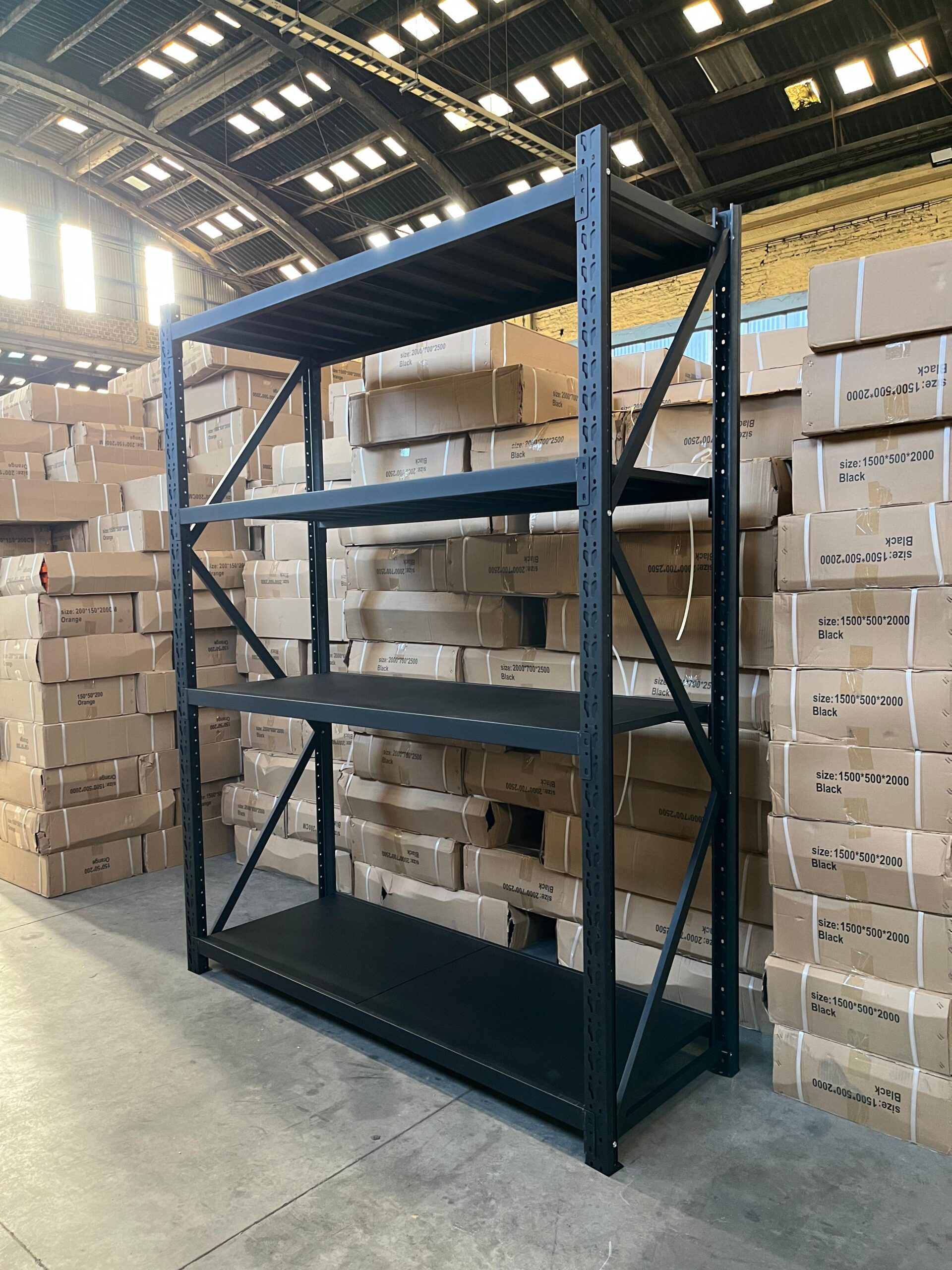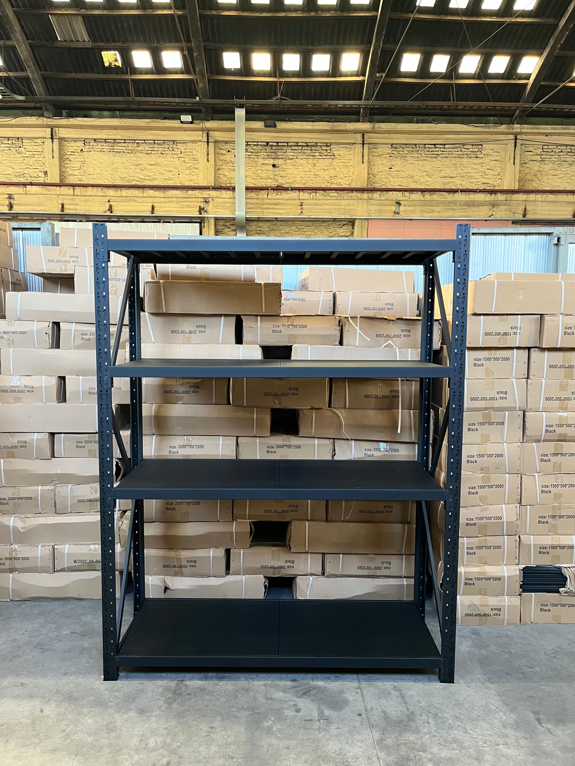 Rack Metálico Negro 256×200×70 cm – 4 Niveles (250 kg por nivel)Organiza y almacena con seguridad gracias a este resistente rack metálico de 256 cm de alto, 200 cm de ancho y 70 cm de profundidad. Diseñado para uso industrial y comercial, cuenta con 4 niveles que soportan hasta 250 kg cada uno, ideal para bodegas, talleres y espacios de alto movimiento.